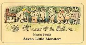 Seven Little Monsters is an American children's picture book written and illustrated by American author and illustrator Maurice Sendak.[1] Published by Harper & Row in 1977, it was originally created as an animated short for Sesame Street in 1971 and served as the basis for the Canadian-Chinese-Filipino PBS Kids show of the same name (2000–2003).[2]