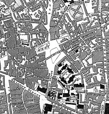 - ↑ Renamed in 1889 to avoid confusion with the Smithfield in Tower Hamlets, nowadays called East Smithfield.