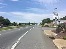 US 13 northbound past the northern terminus of US 13 Alt. in Dover