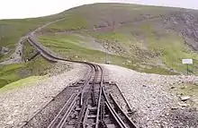 One of the steepest and most exposed parts of the track, looking towards Clogwyn station