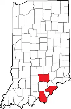 Location of the Southern Athletic Conference within Indiana