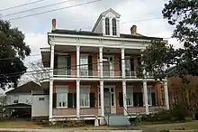 • St. Michael's Church (c. 1875), a cruciform basilica with a tower in Gothic Revival and Romanesque styles. It has a "five bay, aisled nave, and a massive altar set in a great niche whose back wall is cut through with a colonnade screen. The church is entered through a vestibule set in the base in a single central tower. In the ornate nave, multishaft columns rise to foliated capitals which support sets of Romanesque double arches. The exposed truss roof features King posts and foliated hanging pendants. The building is constructed of brick laid up in common bond. The exterior features the verticality, pinnacles, buttresses, and multiple arches of the Gothic style. Yet the numerous semicircular arches and blind arcading are Romanesque. Despite the mixture of styles, the blend is entirely harmonious and elegant. At one time there was an octagonal spire; however, it was blown down in the 1975 hurricane."[2]
