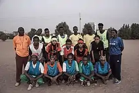 According to a 2011 study of the relationship between religious fundamentalism and globalized societies, the fact that some Sudanese women already had started playing football since the early 2000s despite social and legal restrictions was considered a critical step for the development of an unofficial women's league.[7] As part of this informal league, a first national women's team called The Challenge was created in 2006 in Khartoum.[8] In 2006, The Challenge played its first competitive match. It was captained by Sara Edward and played against a team from Sudan University that wore clothes corresponding to Islamic norms. As reported, the quality of play was not high and the game ended in a 2–0 win for The Challenge team.[9][10]
