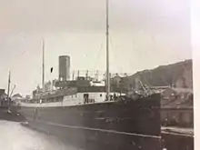 During the war Rushen Castle established what is arguably the longest modern passage between Liverpool and Douglas.[3] On Saturday 27 January 1940 she sailed for Douglas at 10:45, and was instructed by radio to make for Peel as an easterly gale had blown up and made Douglas untenable. Being wartime the message named the captain but not the ship,[4] and by mistake said "go to the West," which would have indicated Peel to Captain Bridson. The captain duly tried to get into Douglas but was then signaled to make for Peel. By the time the ship got to Peel the wind had veered and berthing at Peel was not possible. Eventually the Rushen Castle did get in at Peel - at 10:00hrs on Tuesday 30 January, after being at sea for 71 hours. The Earl of Granville, Lieutenant Governor of the Island at the time was one of the passengers.