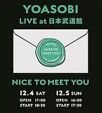 - ↑ "「はじめまして、YOASOBIです!」YOASOBI、有観客ライブ『NICE TO MEET YOU』を日本武道館にて開催". The First Time (in Japanese). December 5, 2021. Retrieved May 4, 2022.