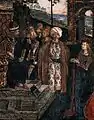 The Hall of the Saints or the Sala dei Santi is a room in the Borgia Apartment of the Vatican Palace, frescoed by the Italian Renaissance artist, Pinturicchio. It dates to 1491–1494 and was commissioned by Pope Alexander VI. The frescoes depict scenes from the lives of the saints. The ceiling fresco, which depicts myths related to the ancient Egyptian gods Osiris and Isis, has been the subject of much scholarly attention.[1] The iconographic program reflects the humanistic interests of Alexander and was likely designed by his secretary, Giovanni Annio of Viterbo.[2]