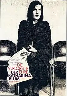 The Lost Honour of Katharina Blum, or: How violence develops and where it can lead (German original title: Die Verlorene Ehre der Katharina Blum oder: Wie Gewalt entstehen und wohin sie führen kann) is a 1975 German political drama film, based on the 1974 novel of the same name by Heinrich Böll, written for the screen and directed by Volker Schlöndorff and Margarethe von Trotta. Schlöndorff and von Trotta wrote the script with an emphasis on the vindictive and harsh treatment of an innocent woman by the public, the police and the media. The film stars Angela Winkler as Blum, Mario Adorf as Kommissar Beizmenne, Dieter Laser as Tötges, and Jürgen Prochnow as Ludwig. The film and the novel were also adapted into an American TV film titled The Lost Honor of Kathryn Beck in 1984.