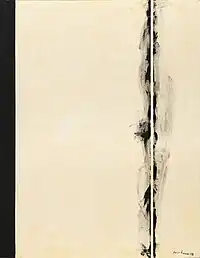 The Stations of the Cross / Lema Sabachthani is a series of fifteen abstract expressionist paintings created between 1958 and 1966 by Barnett Newman, often considered to be his greatest work.[1] It consists of fourteen paintings, each named after one of Jesus's fourteen Stations, followed by a coda, Be II. Unlike most depictions of the Stations of the Cross, Newman did not intend for this to be a narrative journey of Jesus's suffering. Rather, it was intended to evoke the central question of the Passion, lema sabachthani (why have you forsaken me?).[2] The secular, Jewish Newman used this central theme of Christian theology to probe the human condition rather than towards its historical purpose of devotion or worship.[3]