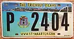 Sint Maarten requires its residents to register their motor vehicles and display vehicle registration plates.[1] Current plates are North American standard 6 × 12 inches (152 × 300 mm).[2] Some plates start with different letters, sometimes similar to plates of the Netherlands: V for commercial vehicles, TX for taxi, D for governmental vehicles, AB for buses. Other letters are in use on the license plates like P,M.
