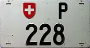 The Post, Telegraph and Telephone company (PTT) and the Swiss Federal Railways (SBB) were part of the federal government until 1997/98. Their vehicles had registration plates composed of the Swiss coat followed by the letter "P" (short for "Post") and a number with up to five digits. When they became independent companies, the P-plates were replaced with cantonal plates in 2004.
