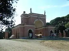 During the defense of the short-lived Roman Republic in 1849–1850, Garibaldi hastily fortified three of the villas on the outskirts of Rome. The Villa Doria Pamphili lay near the scene of some of the fiercest hand-to-hand combat by the Porta San Pancrazio, as students joined Garibaldi's legions to defend Rome from the French troops that were eventually successful in reinstalling Pope Pius IX. In the course of the French bombardment, the prominently-sited neighboring Villa Corsini—called dei Quattro Venti for its airy perch— was destroyed. In the aftermath prince Doria-Pamphili bought the extensive Corsini grounds, almost doubling the Villa Doria Pamphili's already extensive grounds, and erected on the former villa's site the monumental commemorative arch, also known as the ‘Arch of the Four Winds’, which has ever since provided the major access to the Villa's grounds. The Corsini casina near it, called the Palazzino Corsini, was not harmed. Today it is used for temporary art exhibitions.