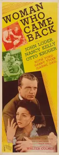 The Woman Who Came Back is a 1945 horror film directed by Walter Colmes and starring John Loder, Nancy Kelly, and Otto Kruger. The film concerns an offbeat woman who becomes convinced that she is a witch, a conclusion which eventually leads to mass hysteria in the town to which she has recently returned.