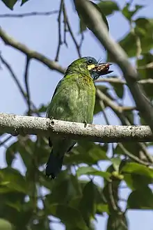 The yellow-eared barbet (Psilopogon australis) is an Asian barbet native to Java and Bali. It inhabits shrubland and forest up to an altitude of 2,000 m (6,600 ft).[1]