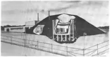 Taken in August, 1967, before the erection of the backup containment structure, this picture shows the network of 80 cables that support the sand and gravel roof over the ZPPR reactor cell